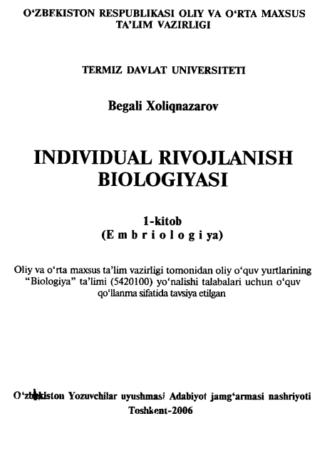 Rivojlanish biologiyasi fanidan labaratoriya mashg'ulotlari