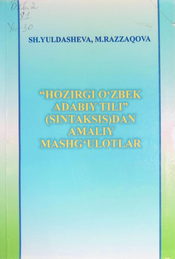 "Hozirgi o'zbek adabiy tili” (sintaksis)dan amaliy mashg'ulotlar