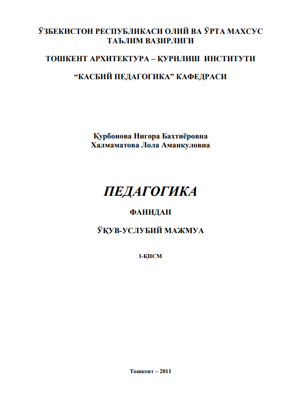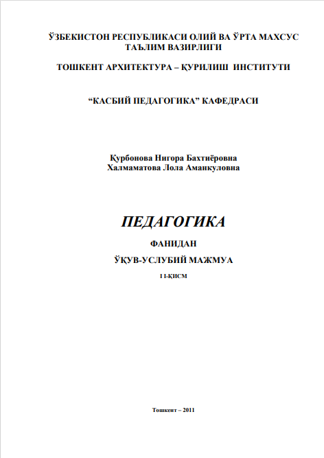 Read More Педагогика фанларини ўқитиш методикаси фанидан курс ишини бажариш ва ҳимоя қилишга доир методик қўлланма