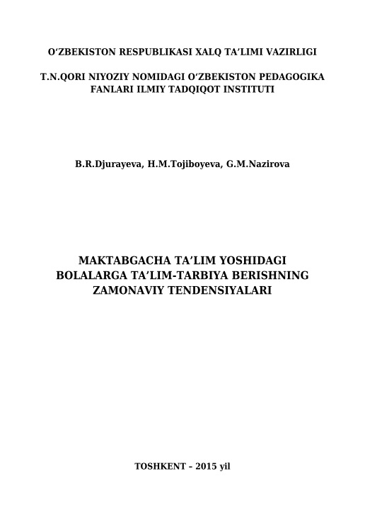 MAKTABGACHA TA’LIM YOSHIDAGI BOLALARGA TA’LIM-TARBIYA BERISHNING ZAMONAVIY TENDENSIYALARI