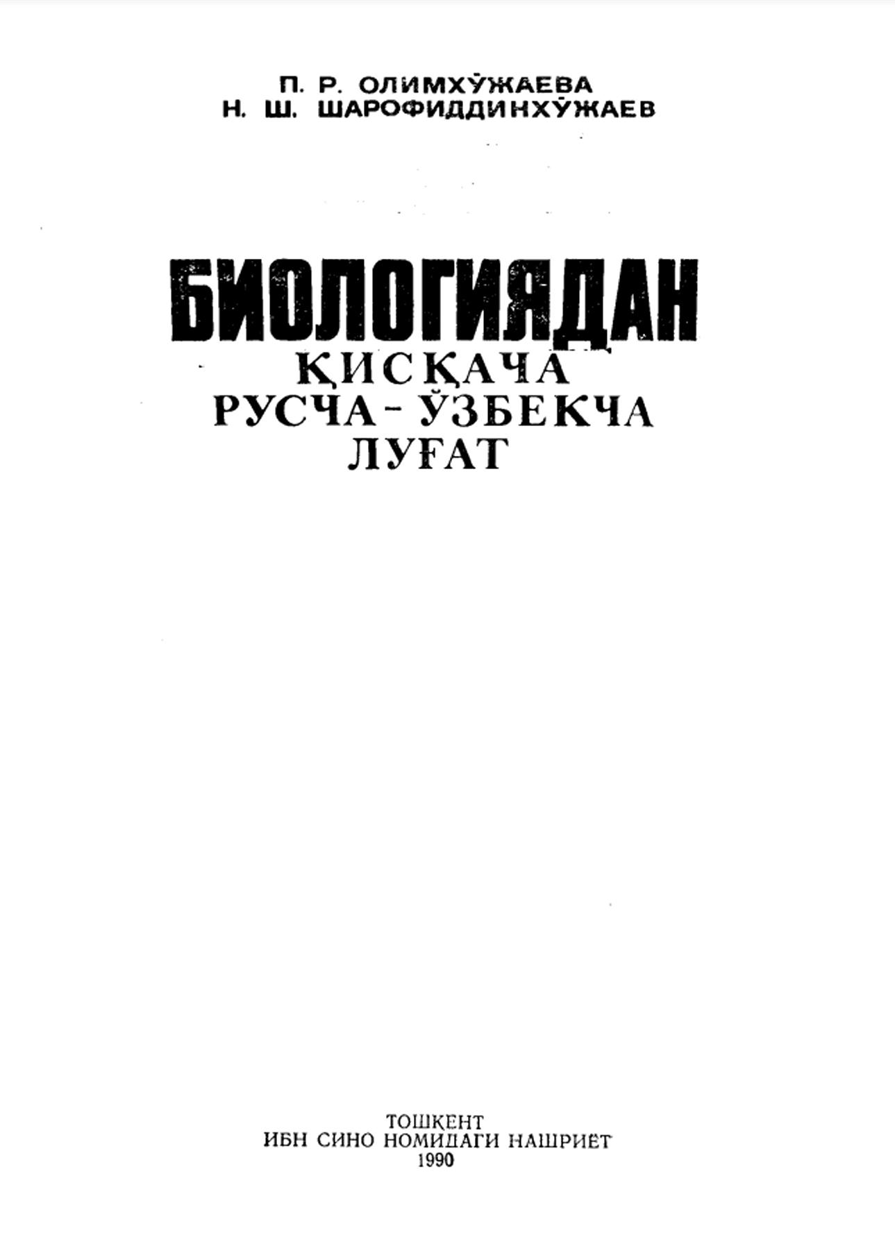 Биологиядан қисқача русча-ўзбекча луғат