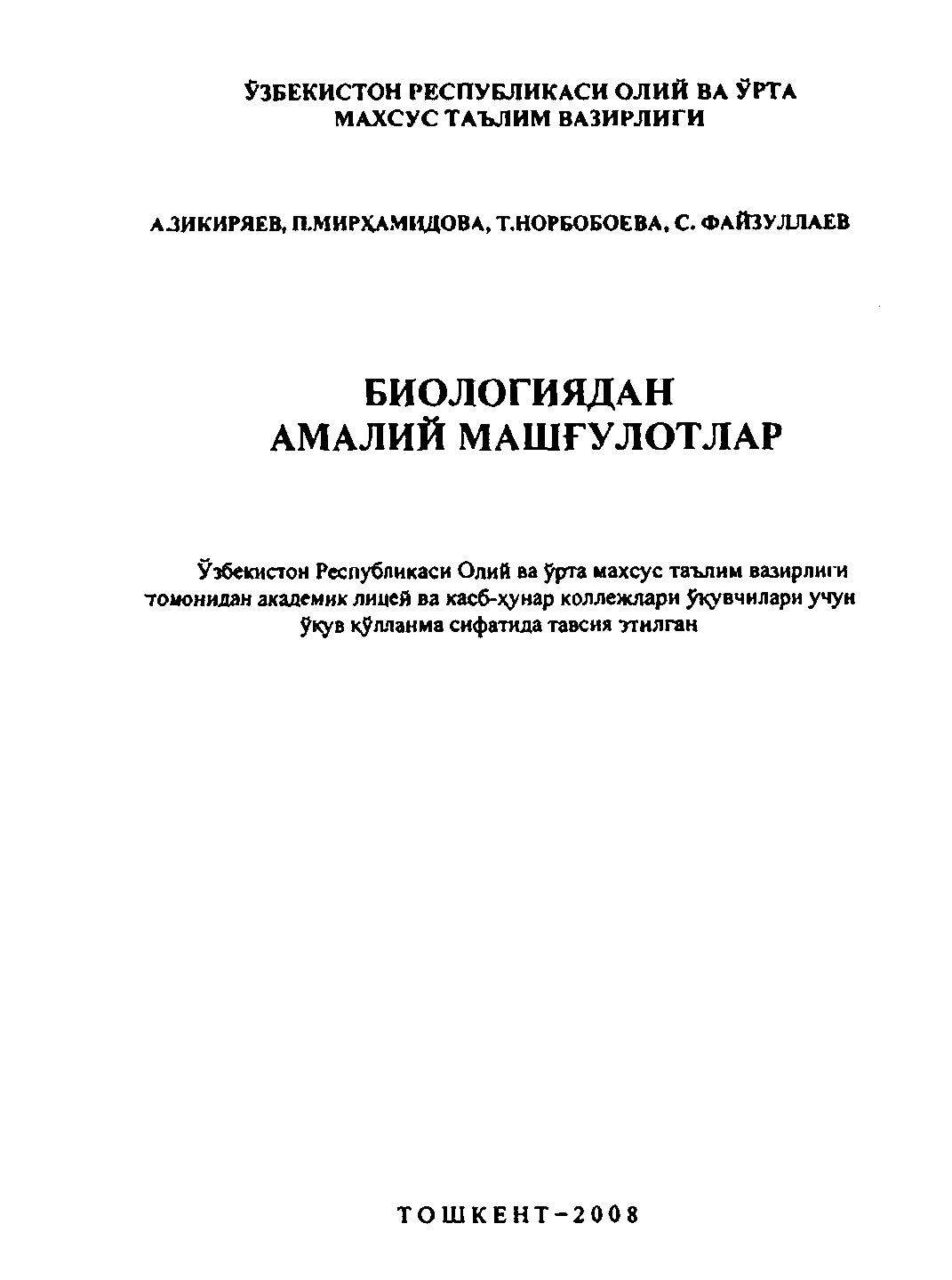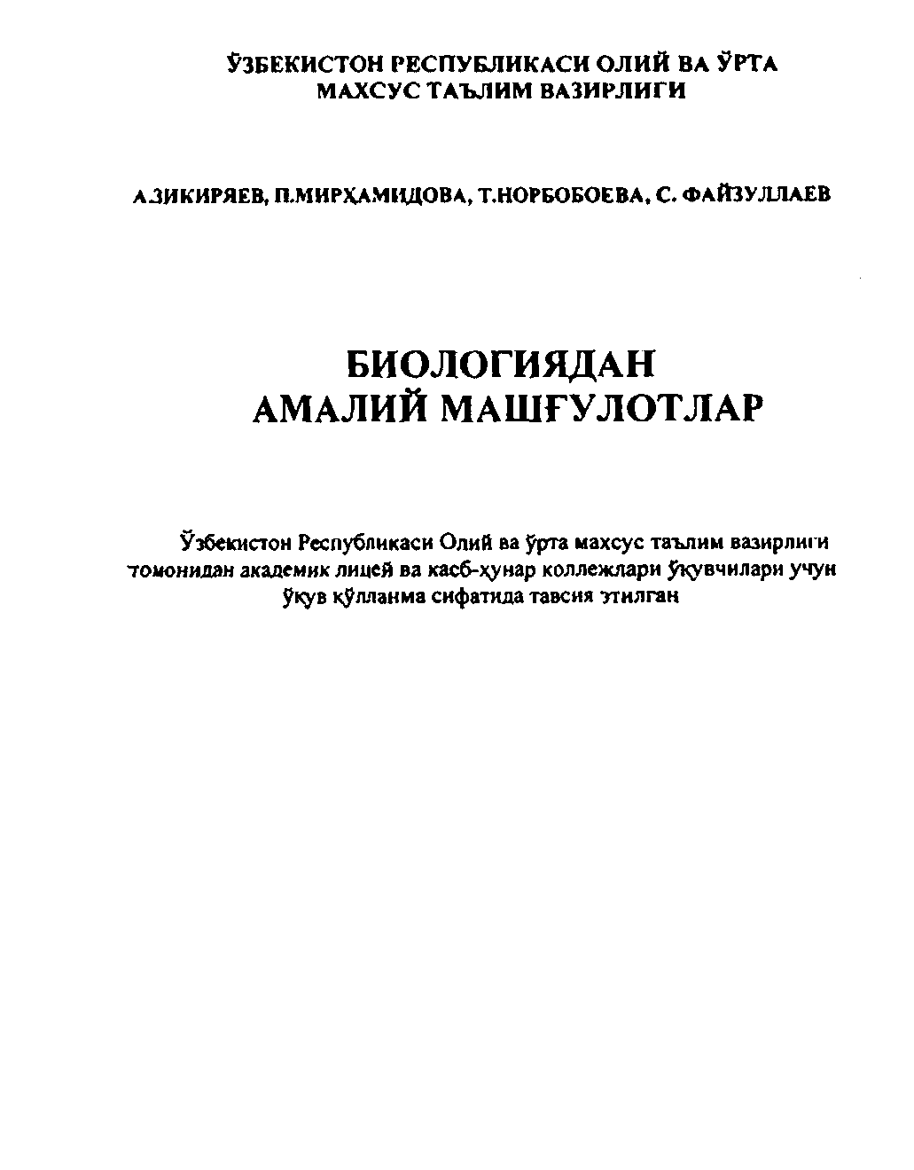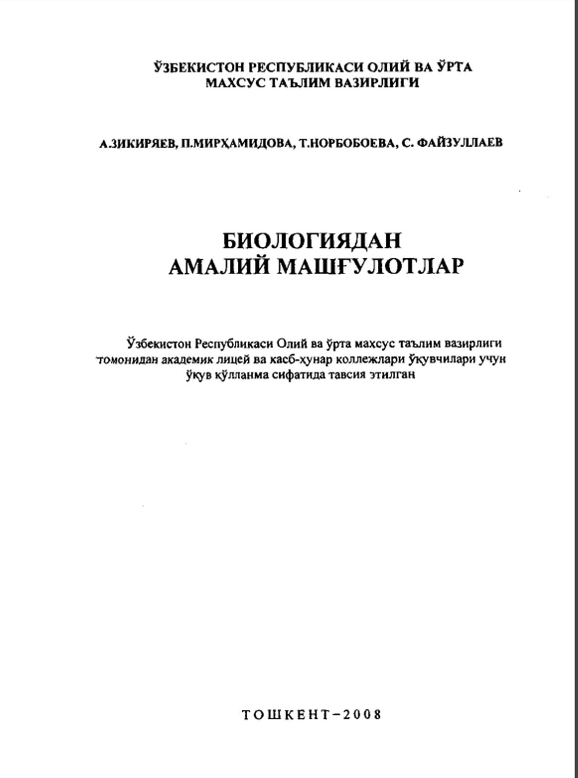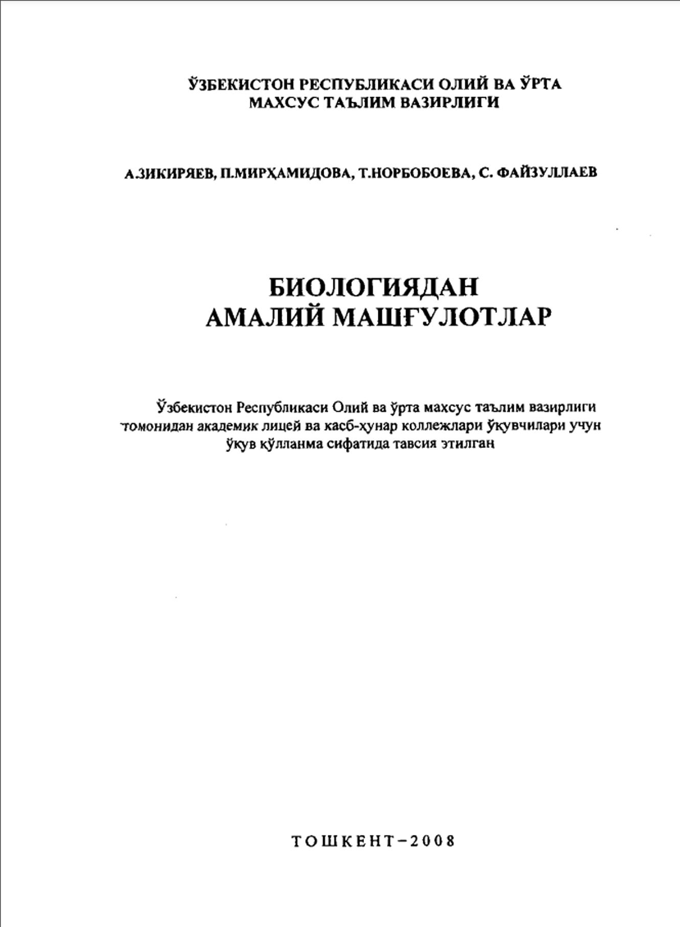 Биологиядан амалий машғулотлар