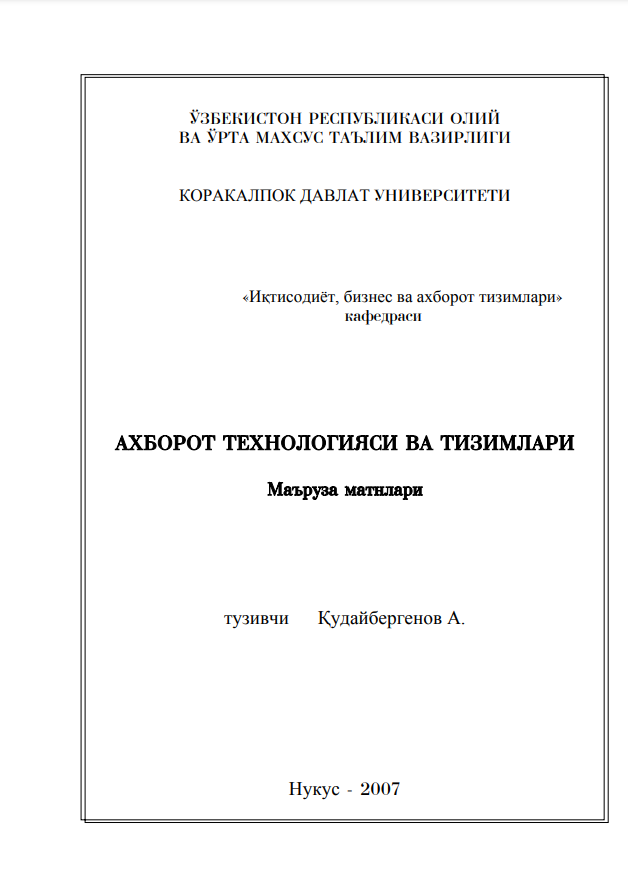 АХБОРОТ ТЕХНОЛОГИЯЛАРИ