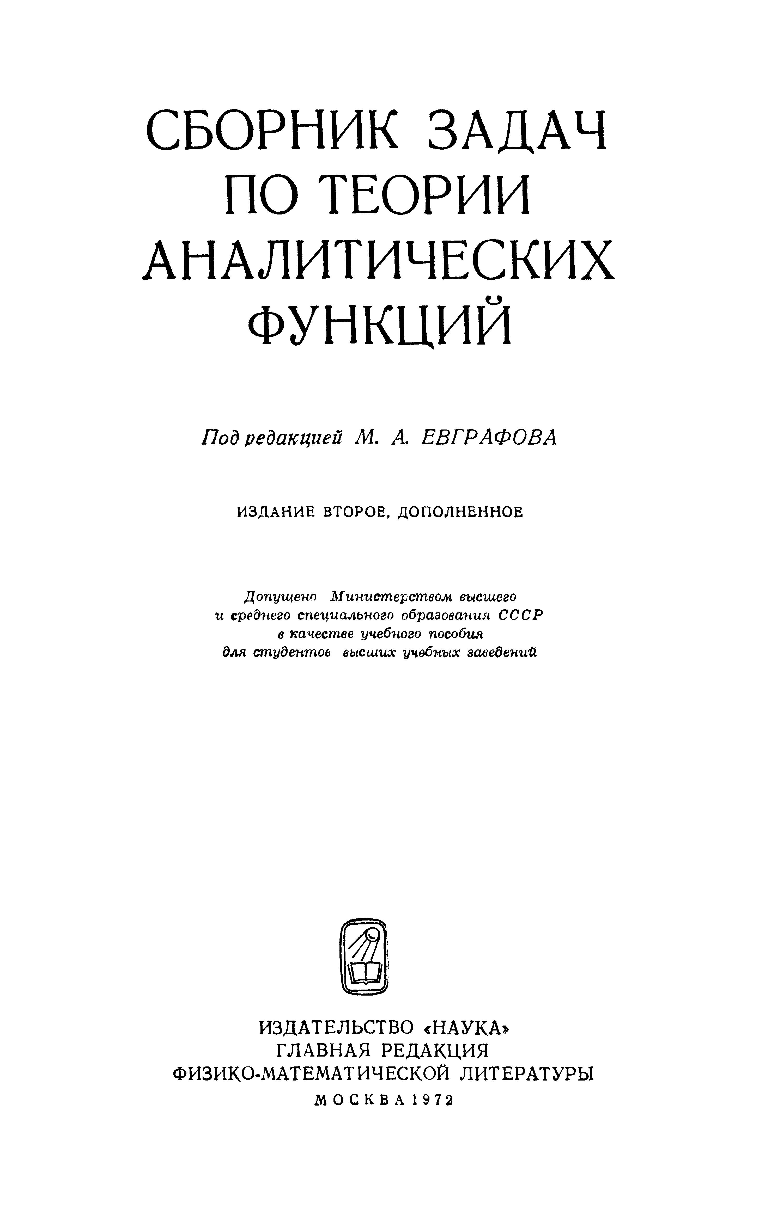 Сборник задач по теории аналитических функций