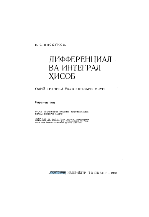 Математик анализ курсидан мисол ва масалалар тўплами