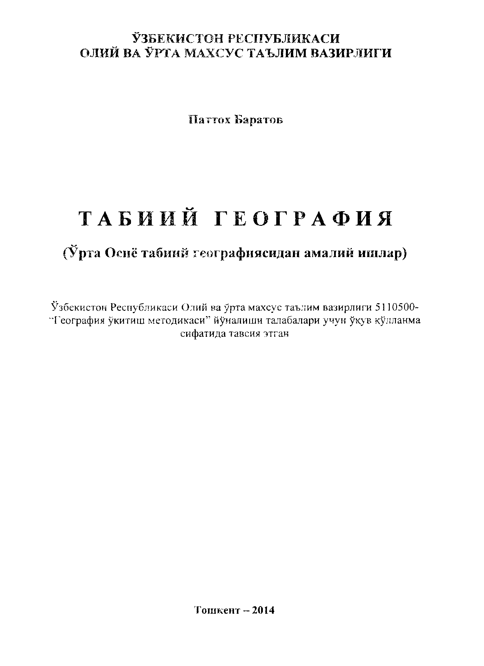 Табиий география (Ўрта Осиё табиий географиясидан амалий ишлар)