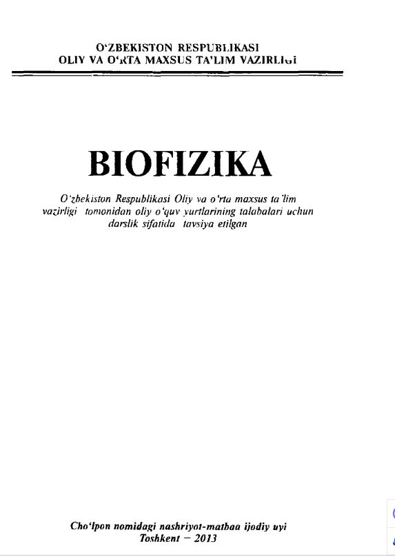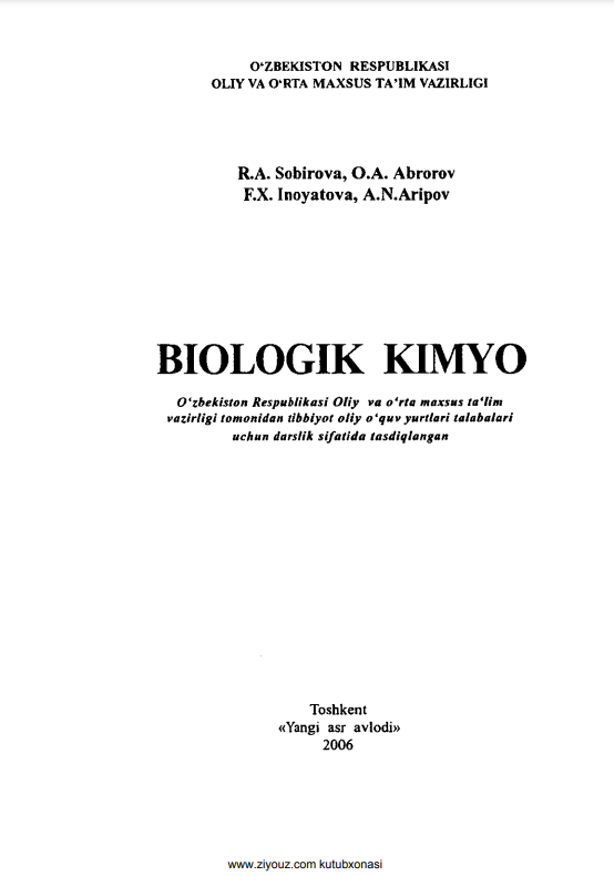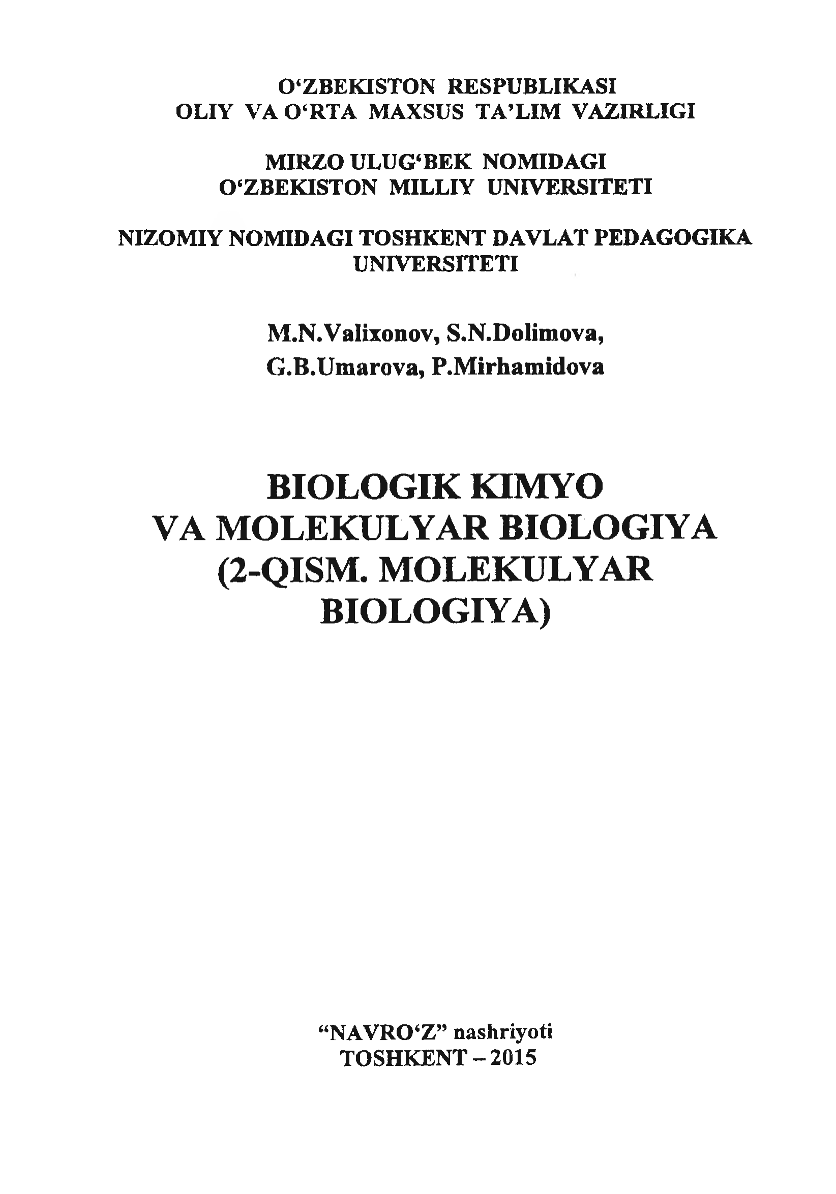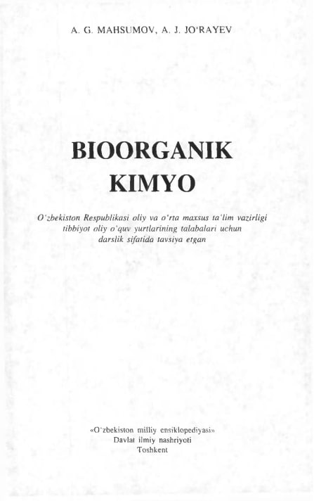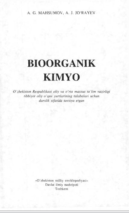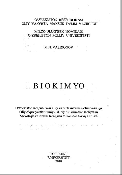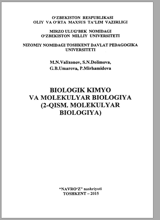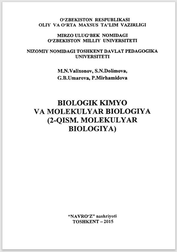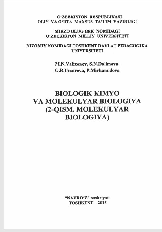BIOLOGIK KIMYO VA MOLEKULYAR BIOLOGIYA