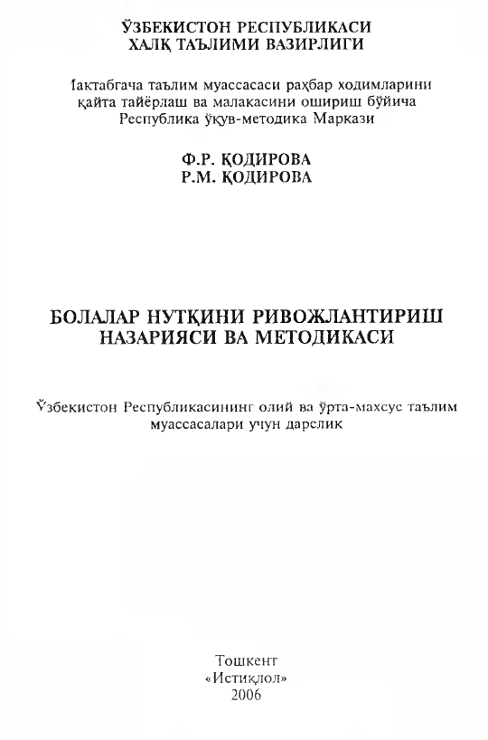 Bolalar nutqini o'stirish nazariyasi va texnologiyasi