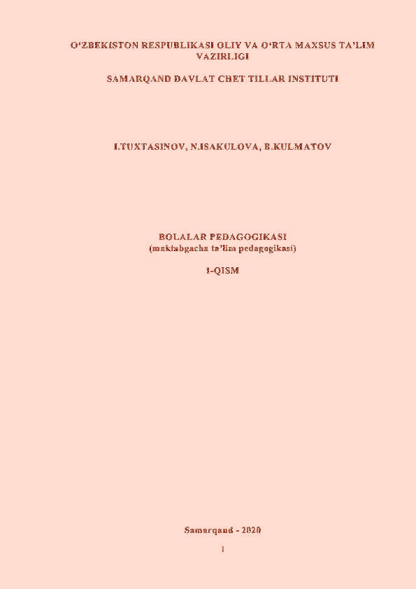 BOLALAR PEDAGOGIKASI (maktabgacha ta‟lim pedagogikasi)