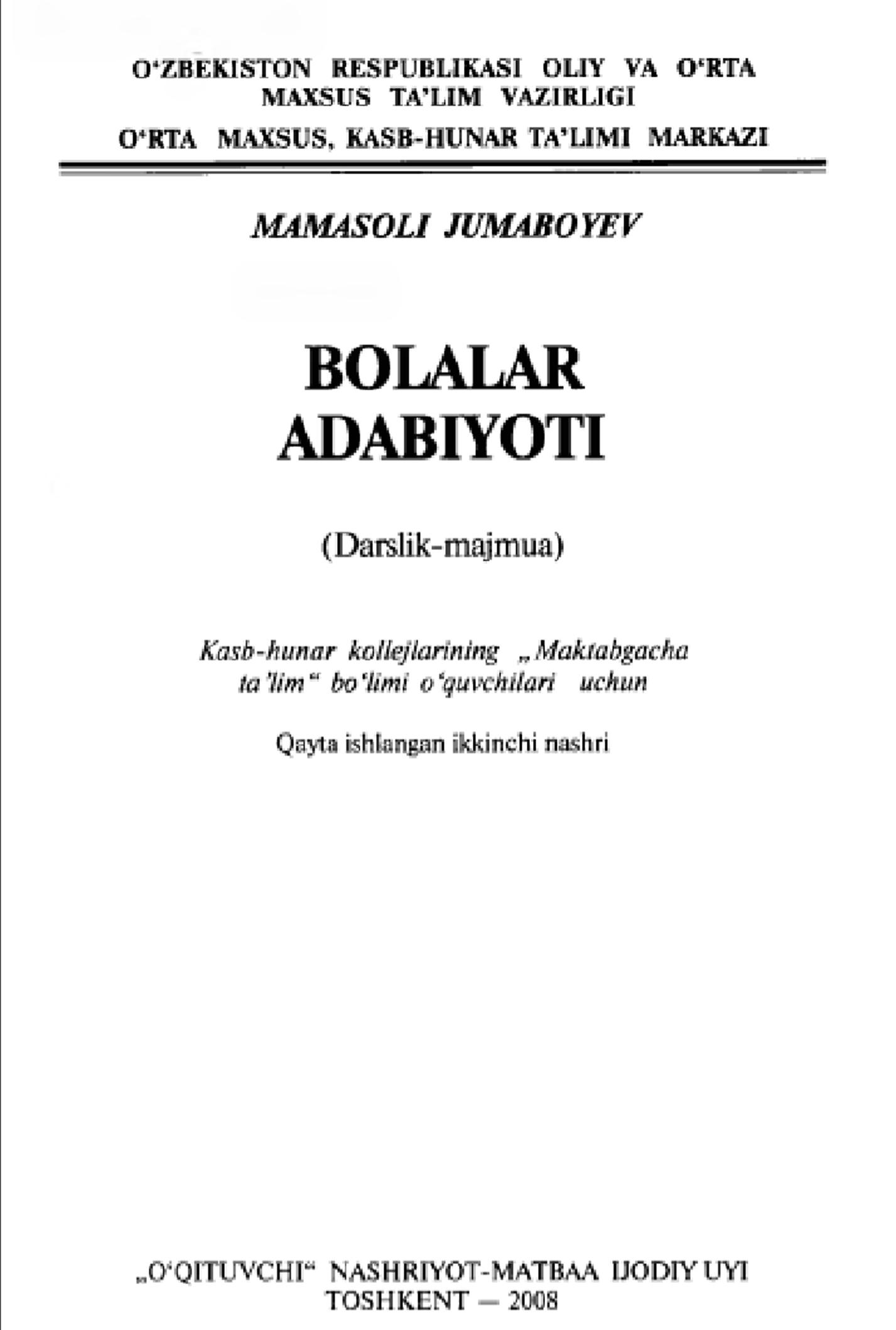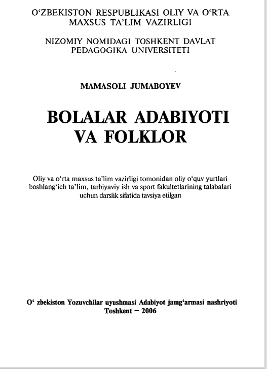 BOLALAR ADABIYOTI (CHILDREN’S LITERATURE)