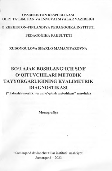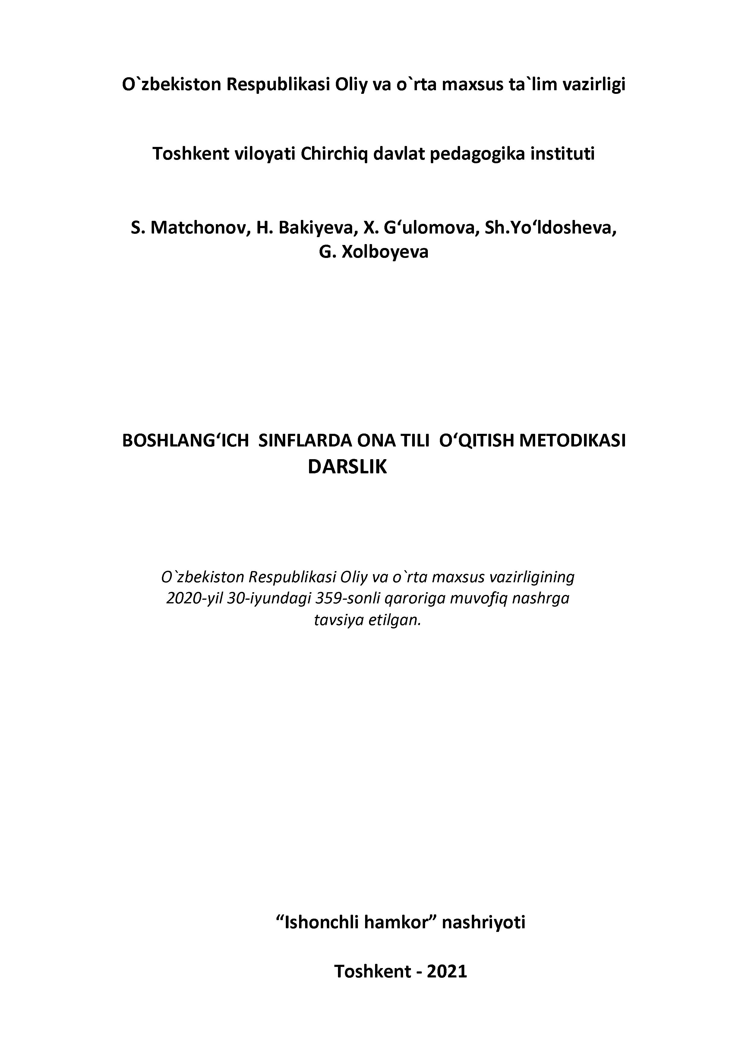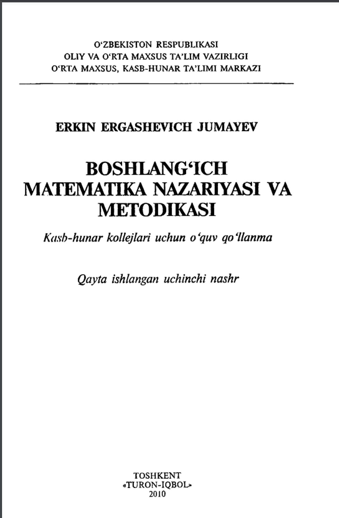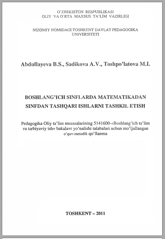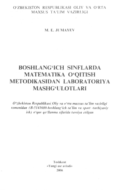 Boshlang‘ich sinflarda matematika o‘qitish metodikasi