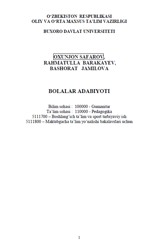 BOLALALARNI MAKTAB TA’LIMIGA TAYYORLASH METODIKASI