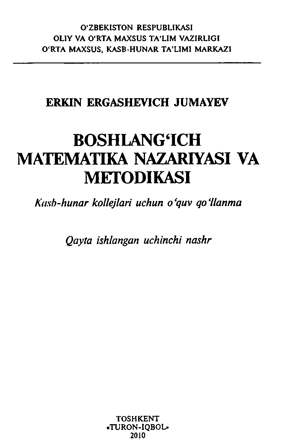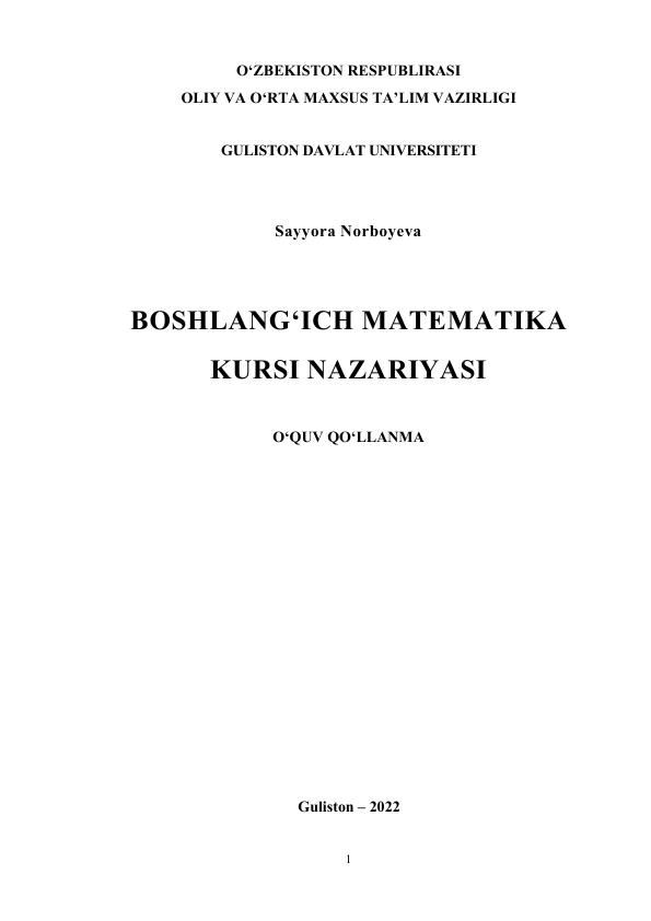 Boshlang'ich matematk kursi nazaryasi