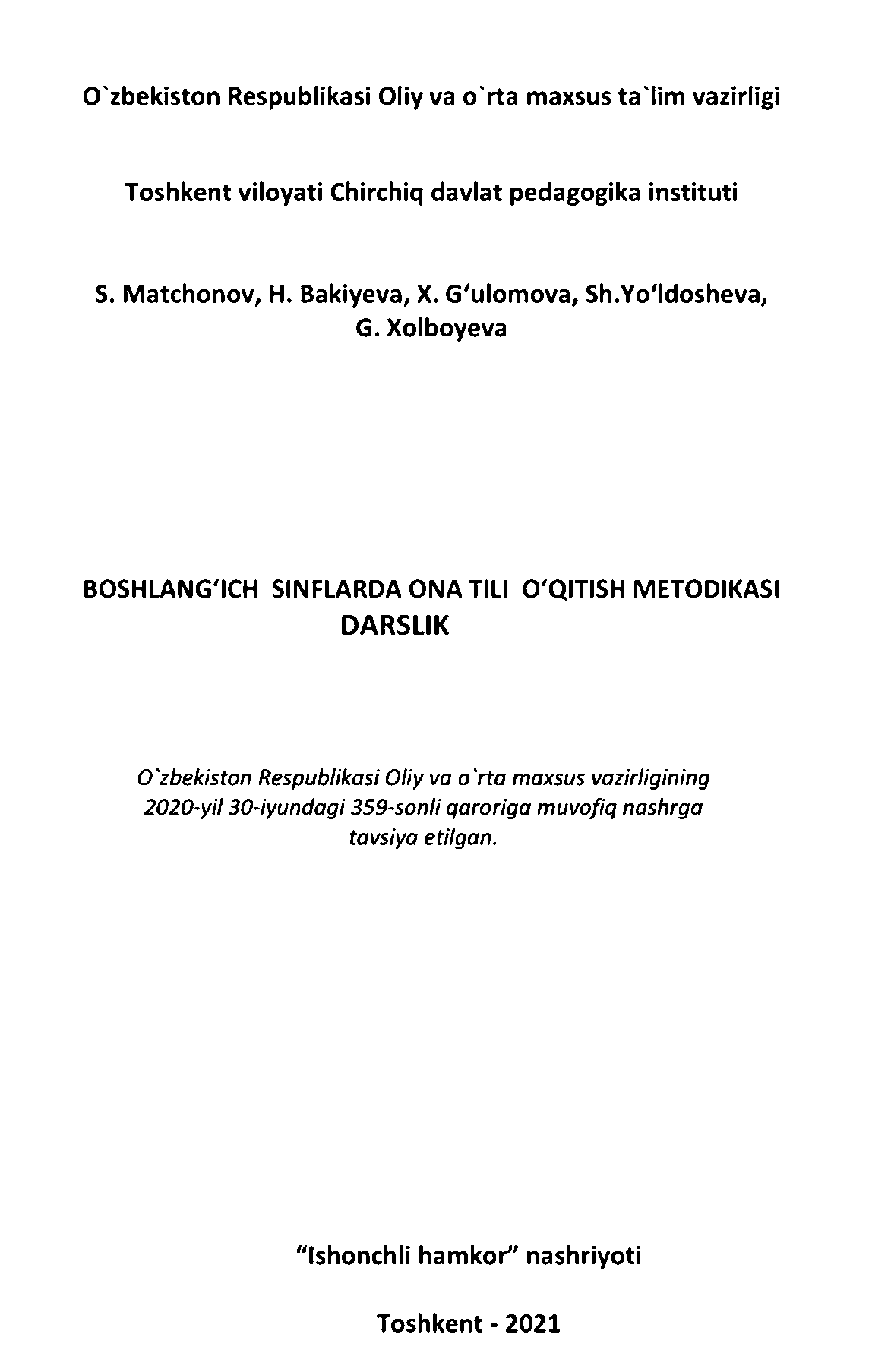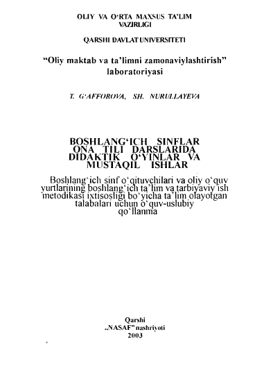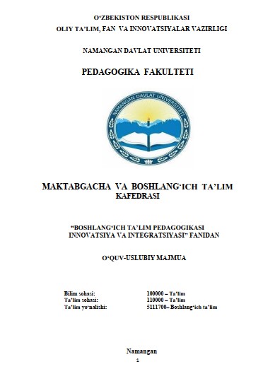 BOSHLANG'ICH TA'LIMDA TARBIYAVIY ISHLAR METODIKASI