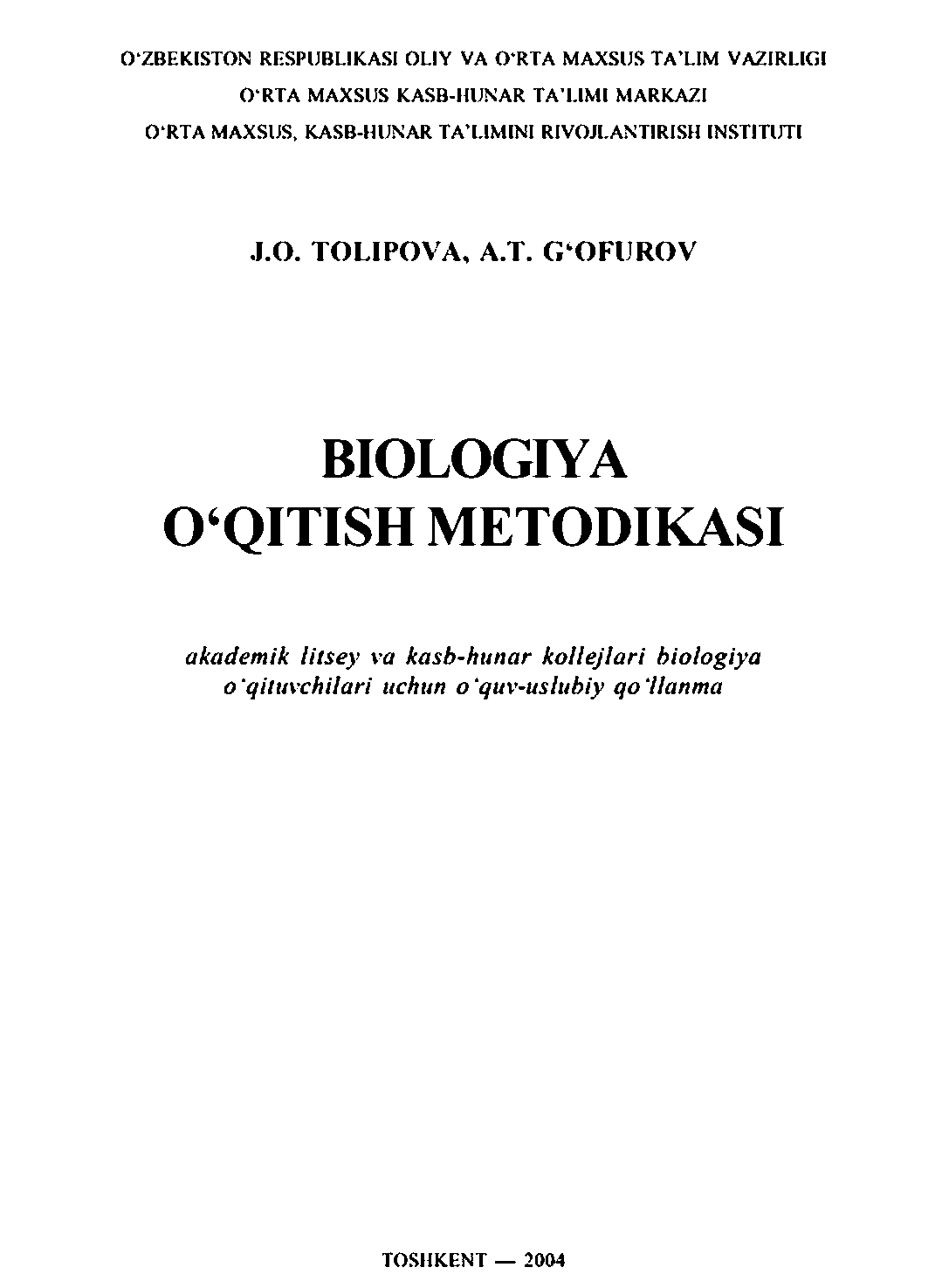 BIOLOGIYA O‘QITISH METODIKASI
