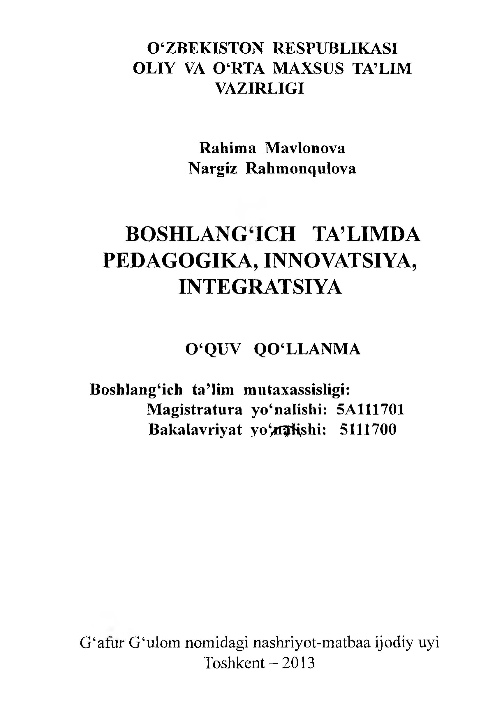 Boshlang'ich ta'limda zamoniy texnologiyalar