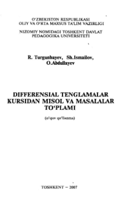 DIFFERENSIAL TENGLAMALAR KURSIDAN MISOL УА MASALALAR TO‘PLAMI