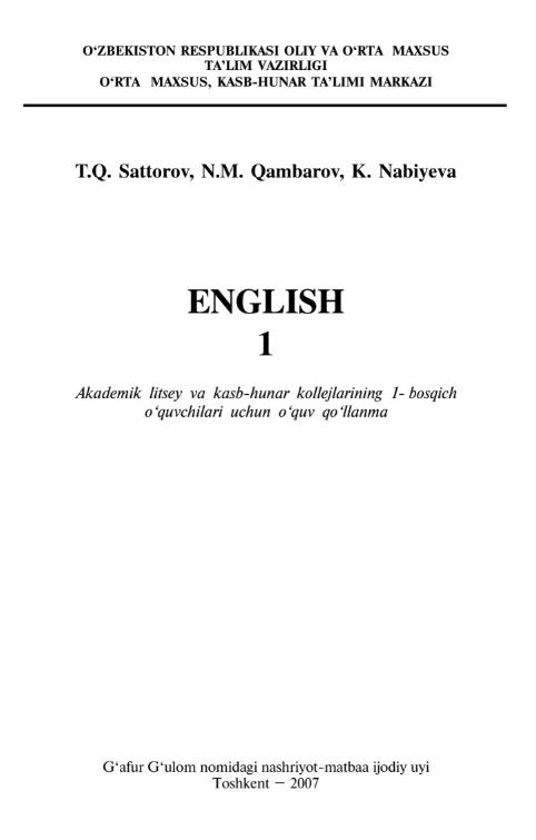 ENGLISH FOR RUSSIAN LANGUAGE AND LITERATURE STUDENTS