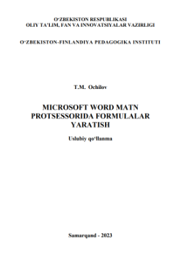 MATEMATIKA O‘QITISH METODIKASI