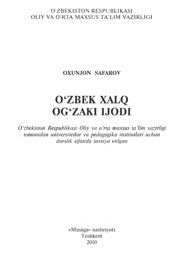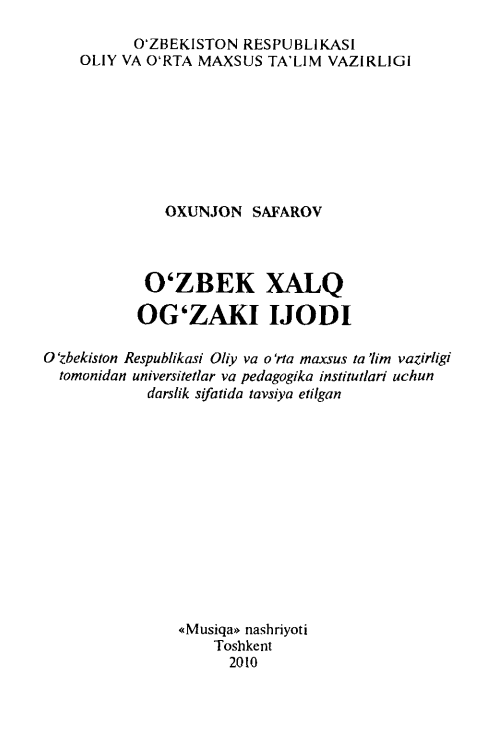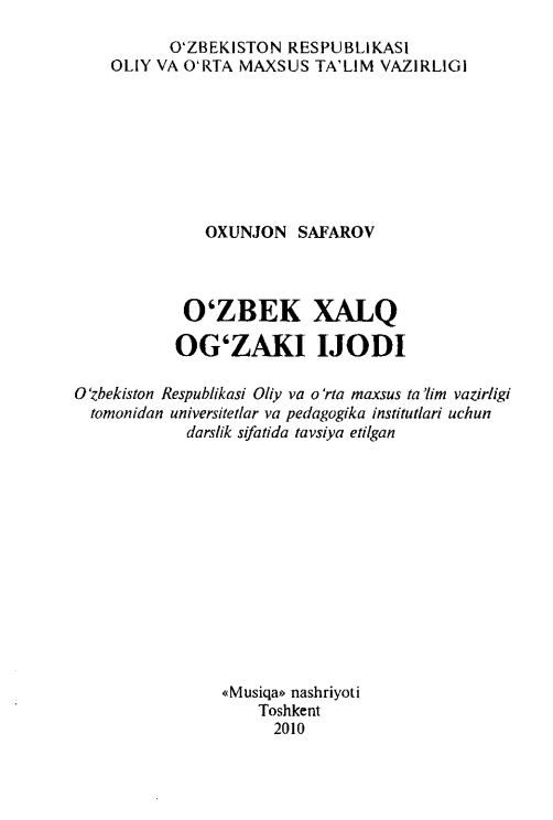 O`zbek xalq og`zaki ijodi xrestomatiyasi