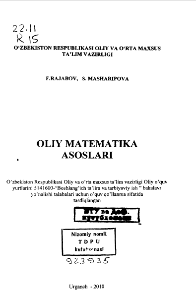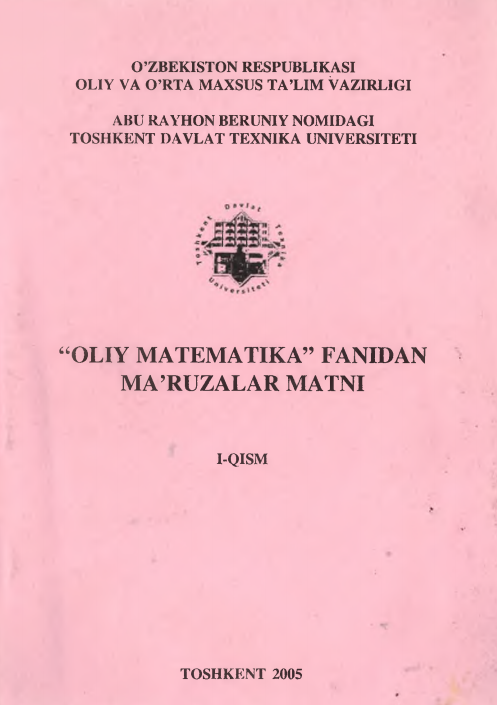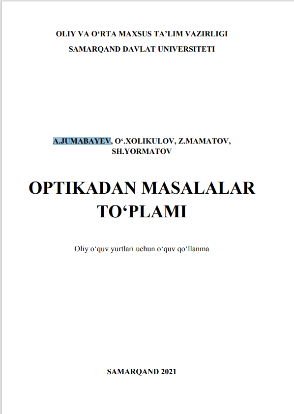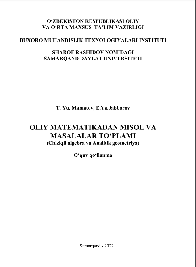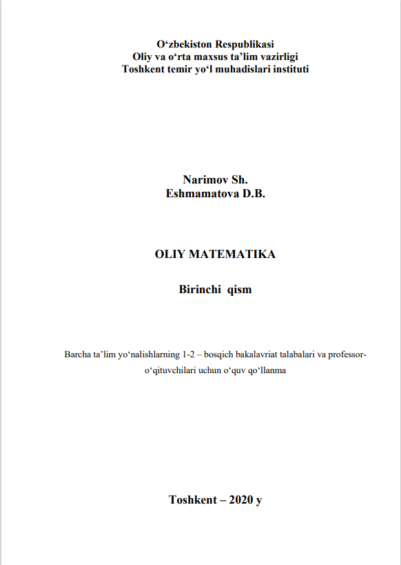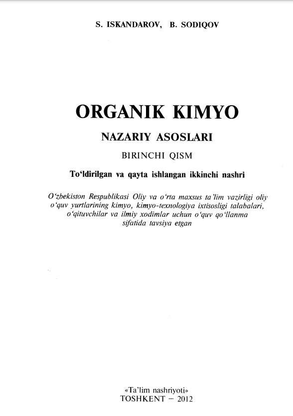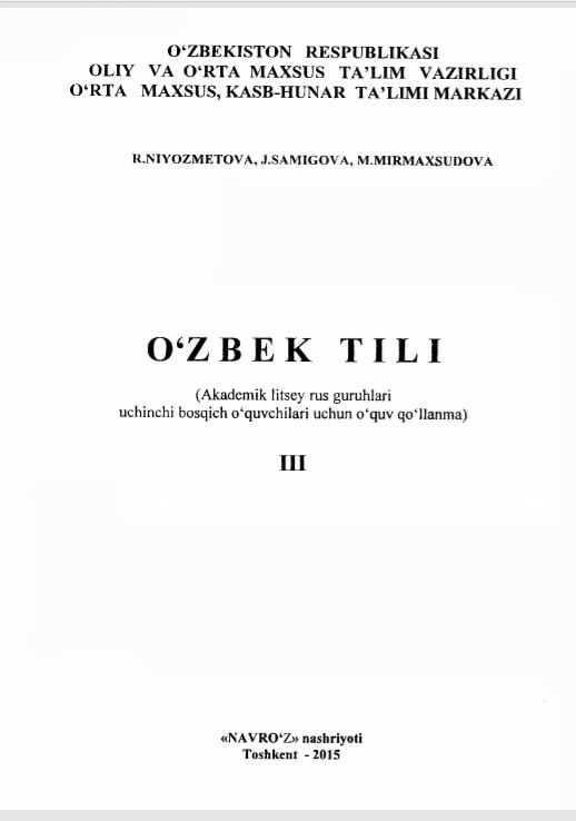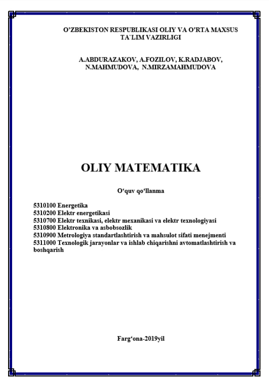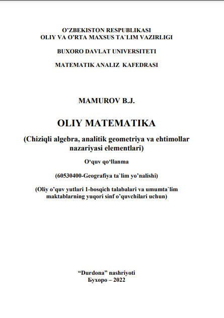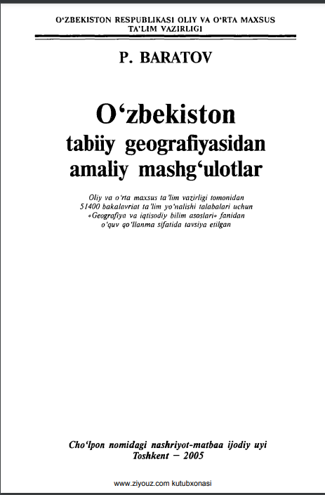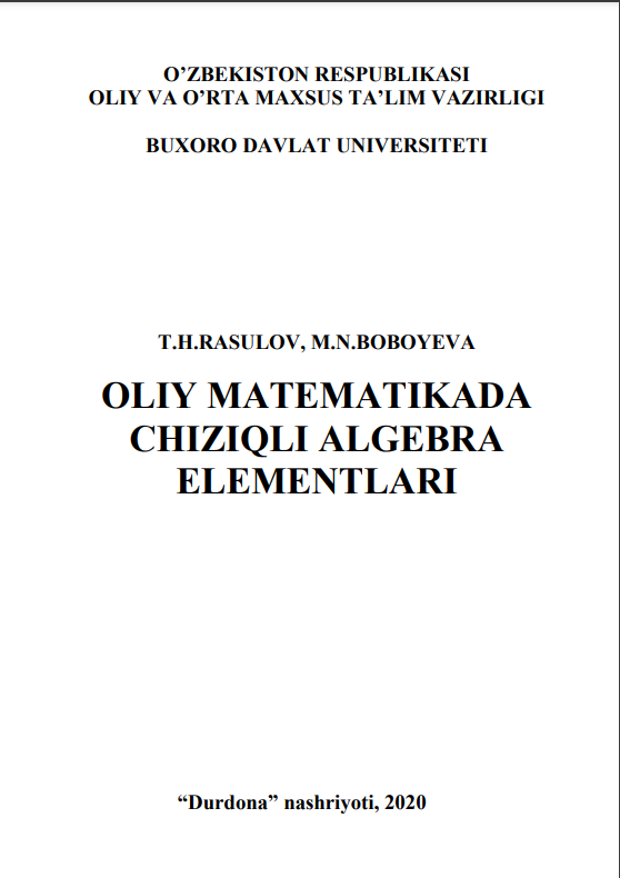 O‘zbekiston Respublikasi Oliy va o‘rta maxsus, kasb-hunar ta’limi markazi ilmiy-metodik kengashi tomonidan nashrga tavsiya etilgan.