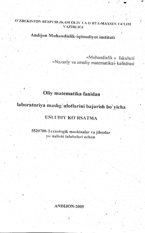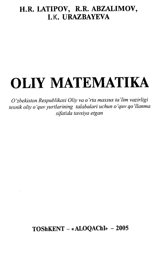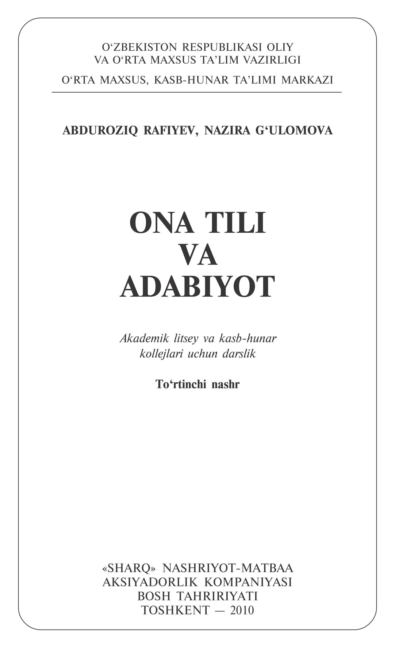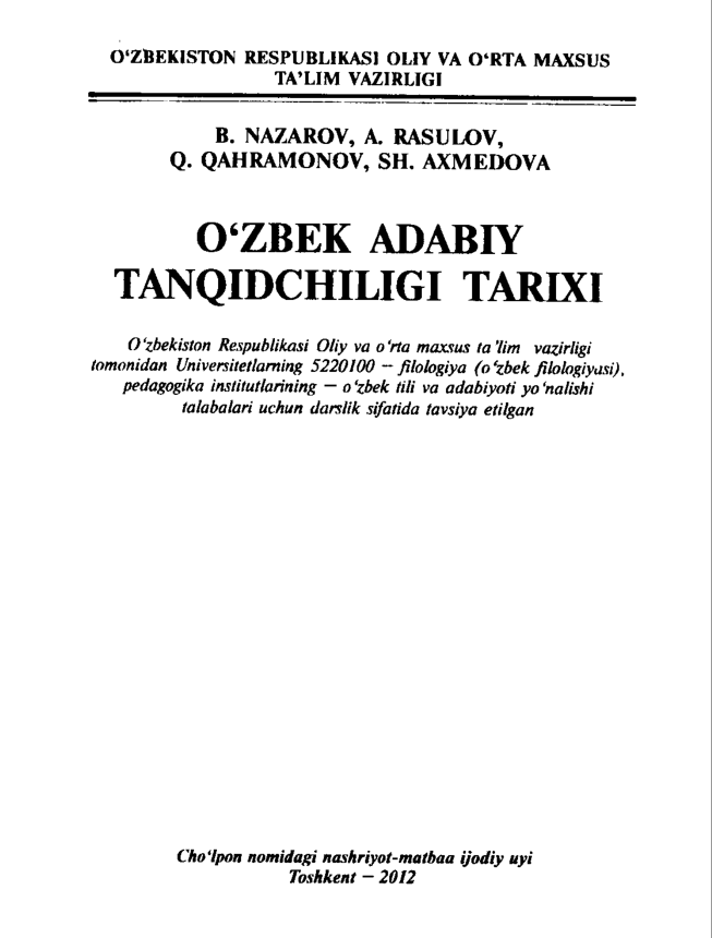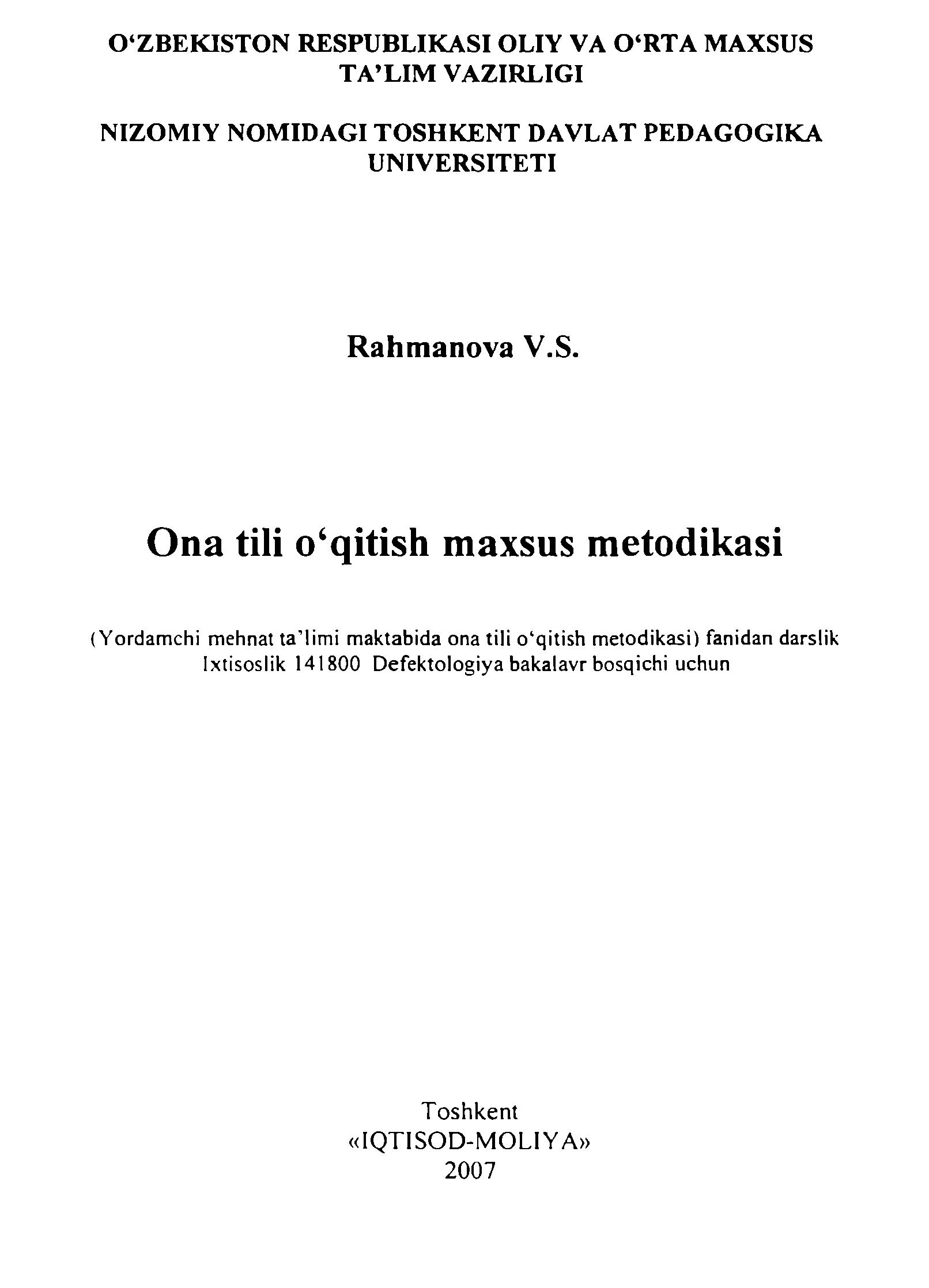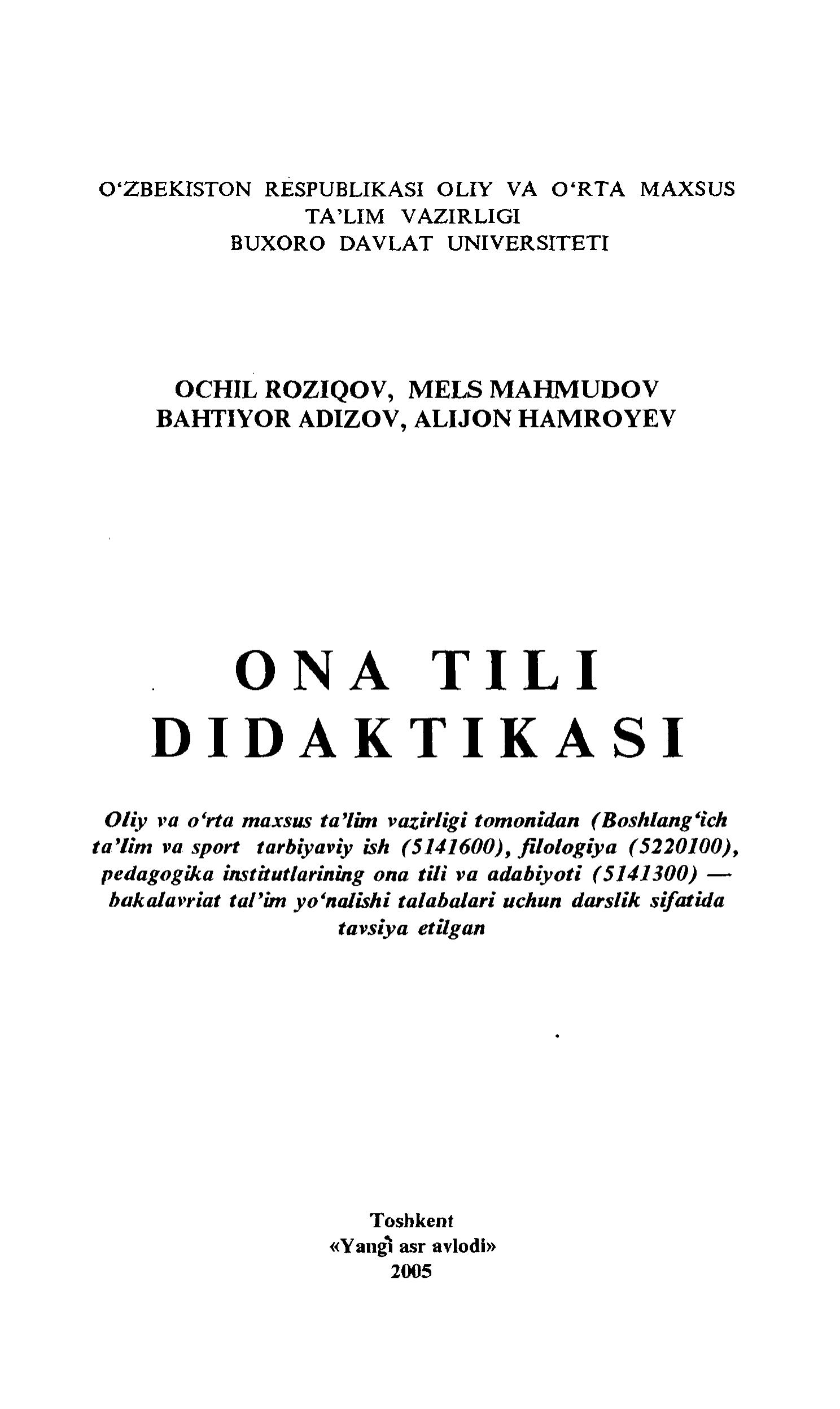 O‘zbekiston Respublikasi Oliy va o‘rta maxsus, kasb-hunar ta’limi markazi ilmiy-metodik kengashi tomonidan nashrga tavsiya etilgan.