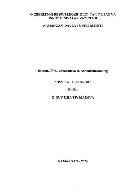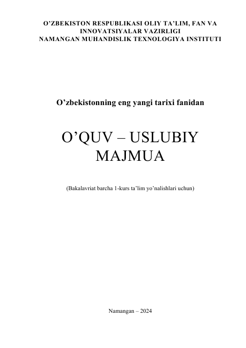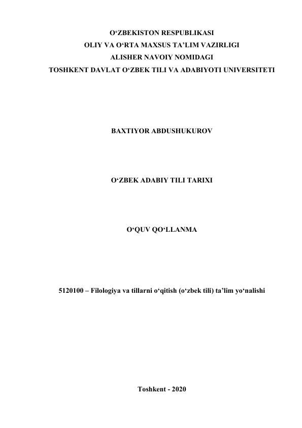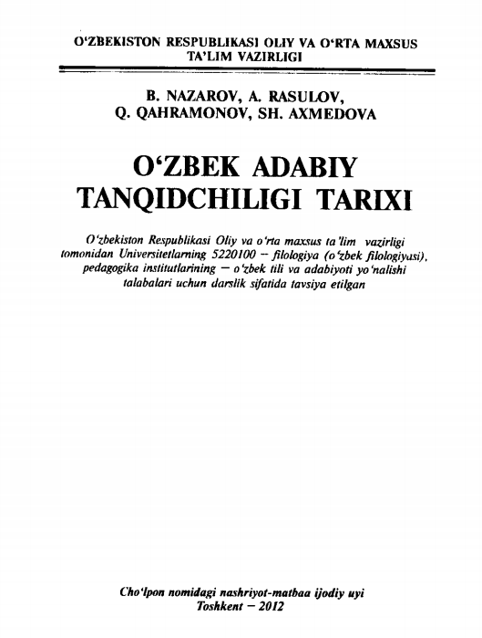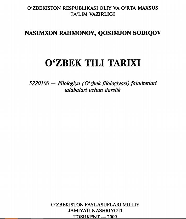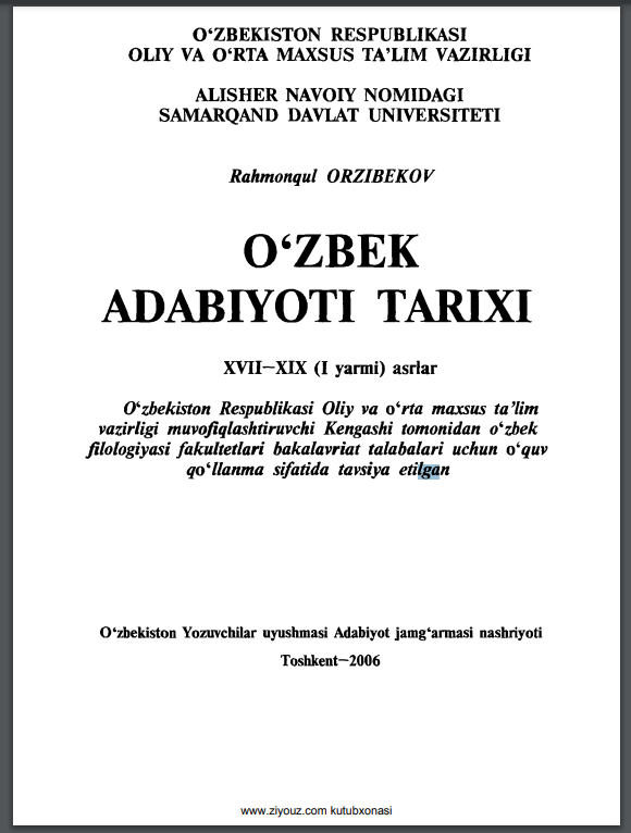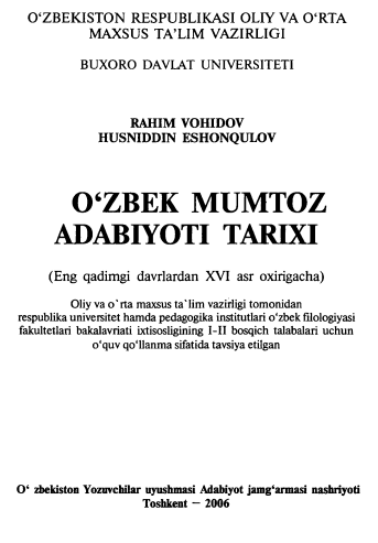 O'zbek Adabiyoti tarixi va yangi o'zbek adabiyoti