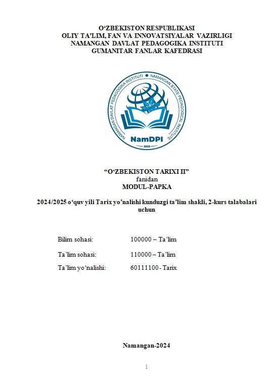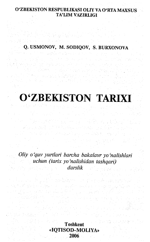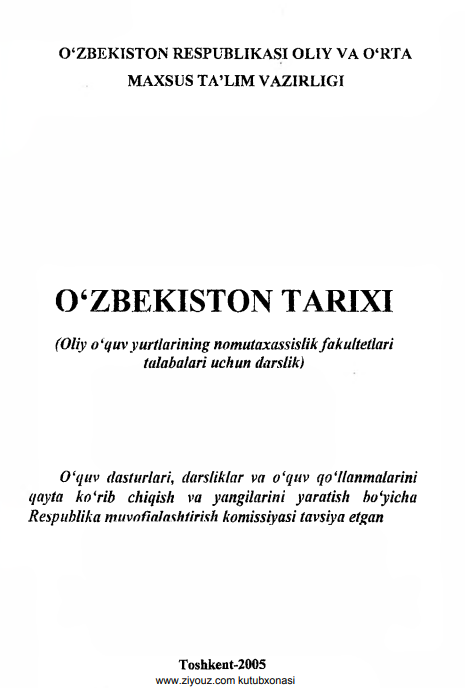 O'zbekiston tarixi II-kitob (XIV asr o'rtalaridan XIX asr ikkinchi yarmigacha)
