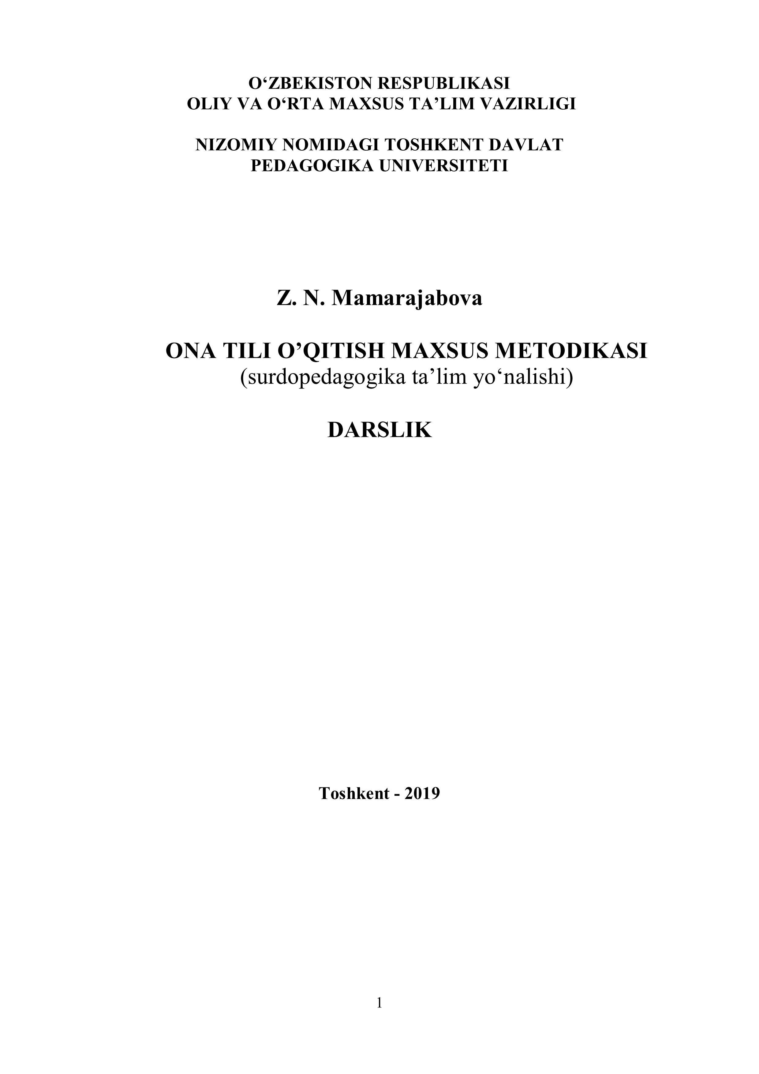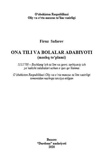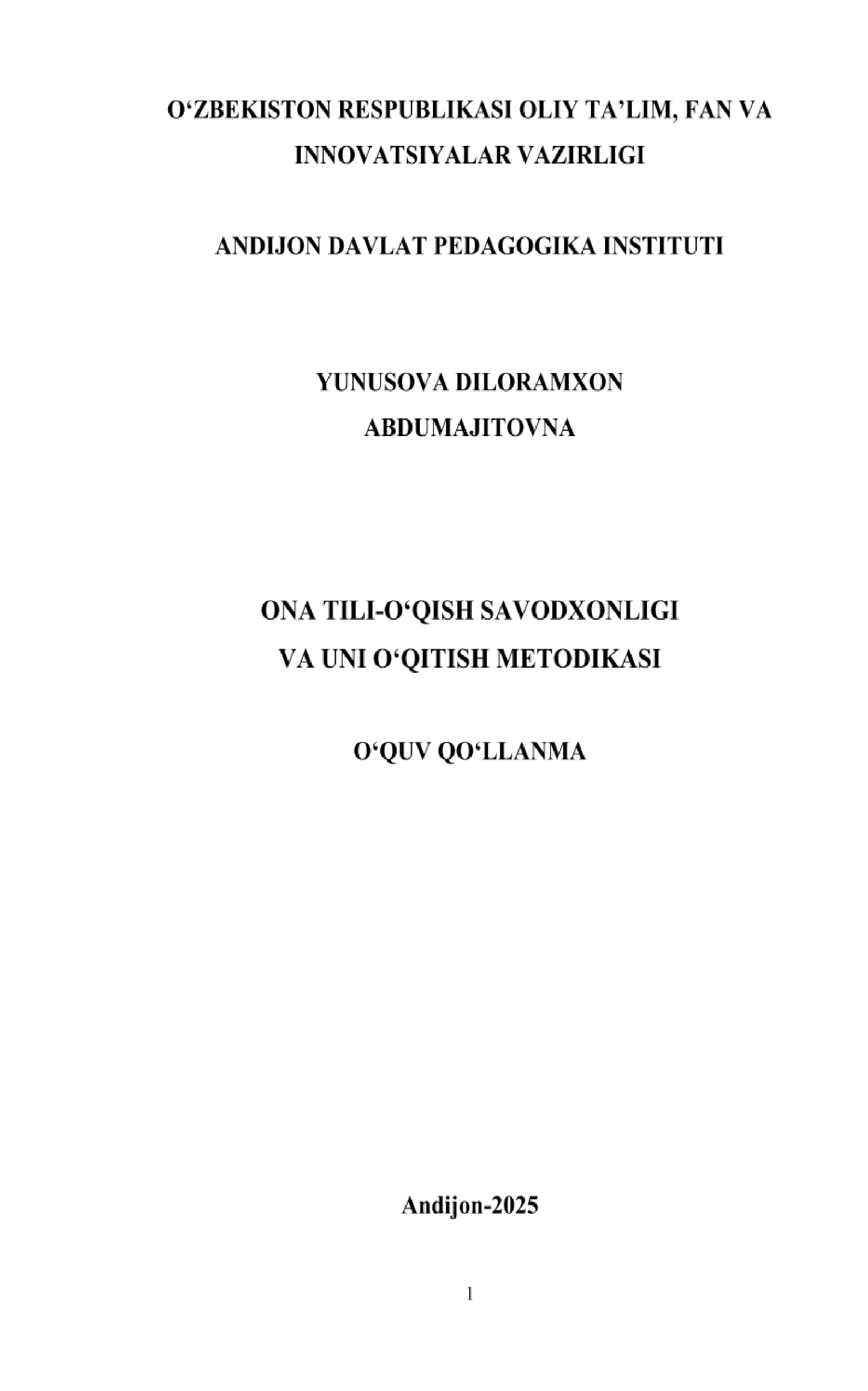Ona tili-o‘qish savodxonligi va uni o ’qitish mclodikasi