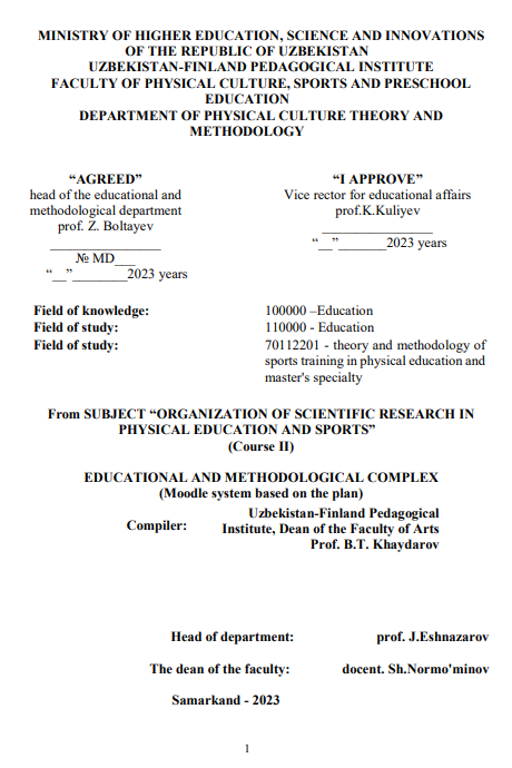 OLIY VA PROFESSIONAL TA‟LIMDA MUTAXASSISLIK FANLARINI O'QITISH METODIKASI