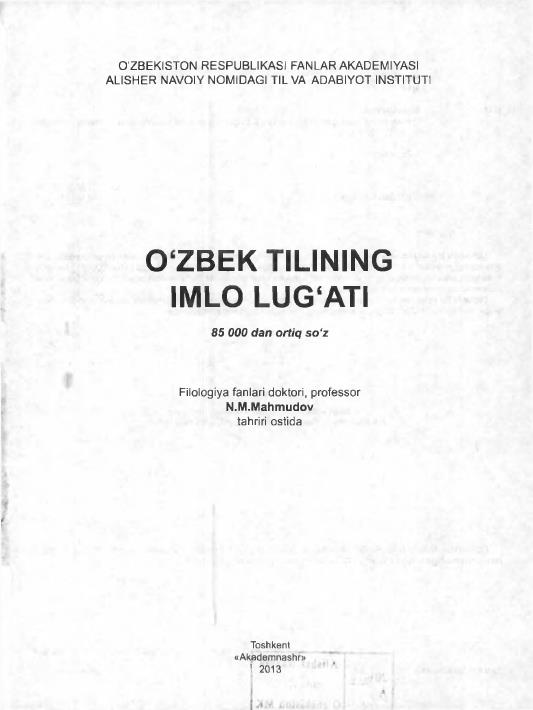 O'ZBEK TILINING O'QUV IMLO LUG'ATI