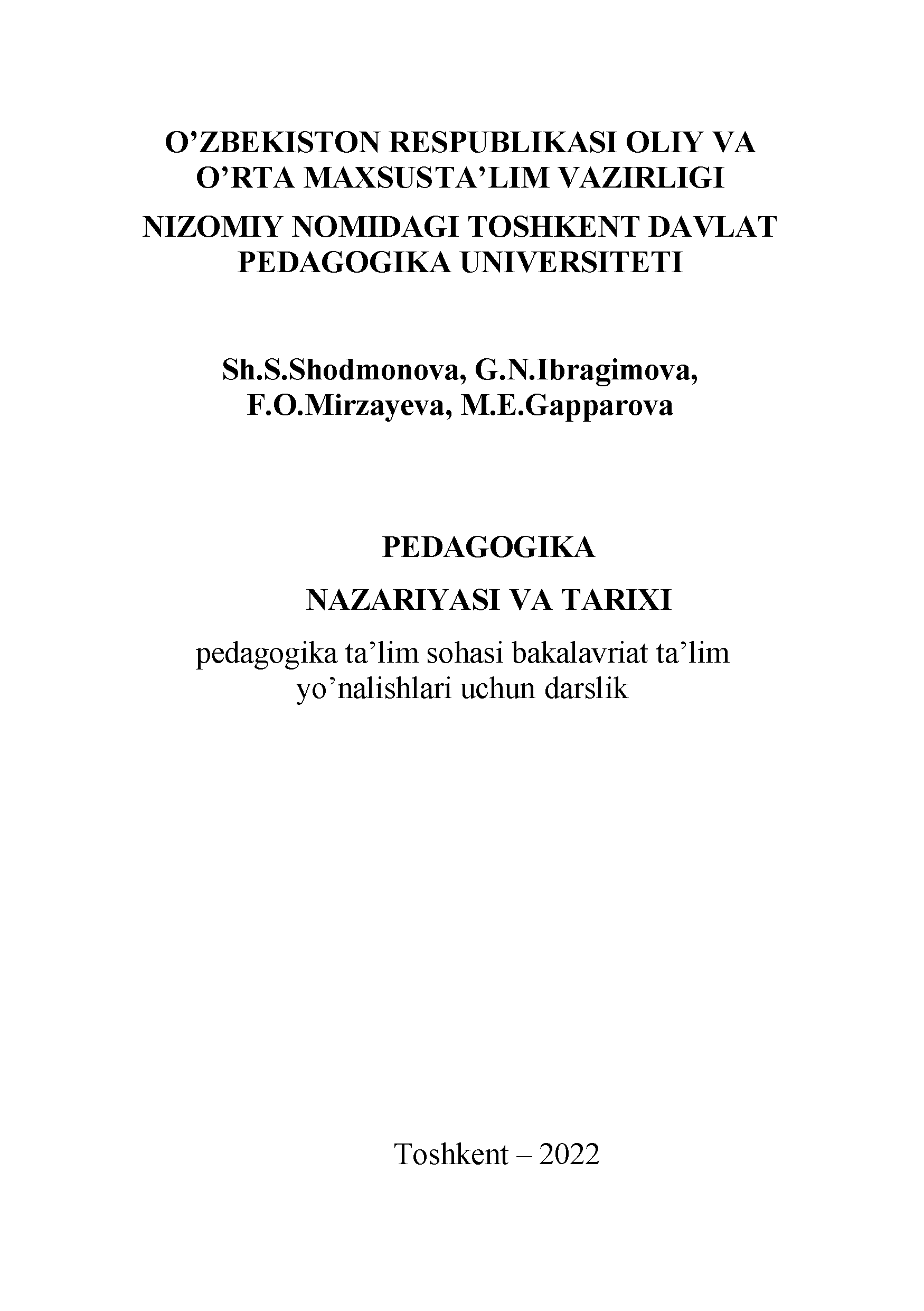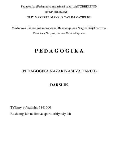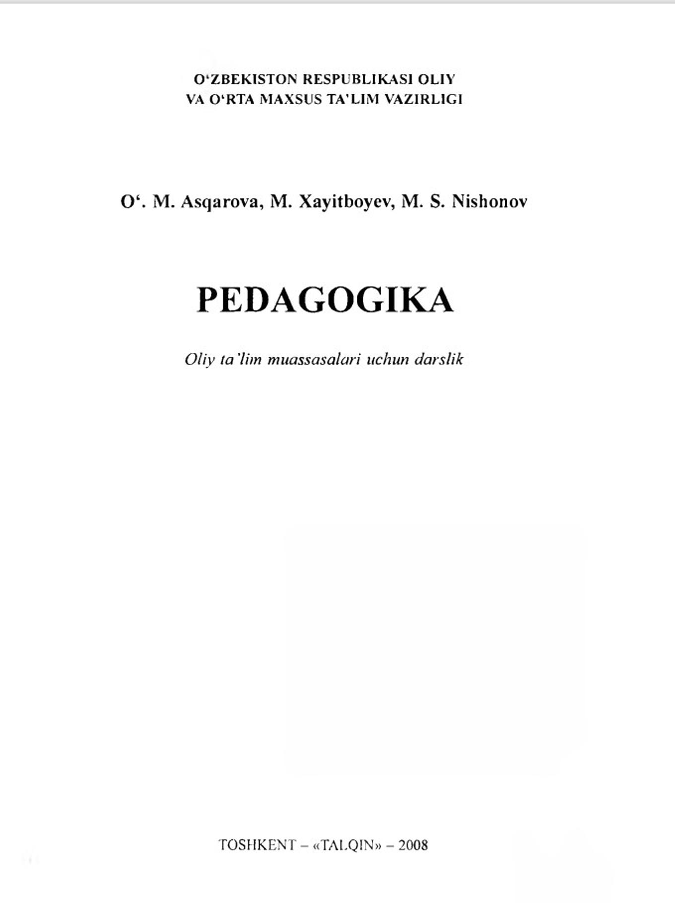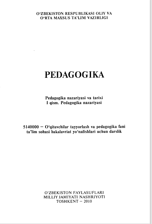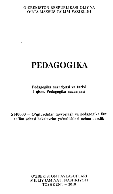 Pedagogika. Pedagogika nazariyasi va tarixi 1 qism. Pedagogika nazariyasi.