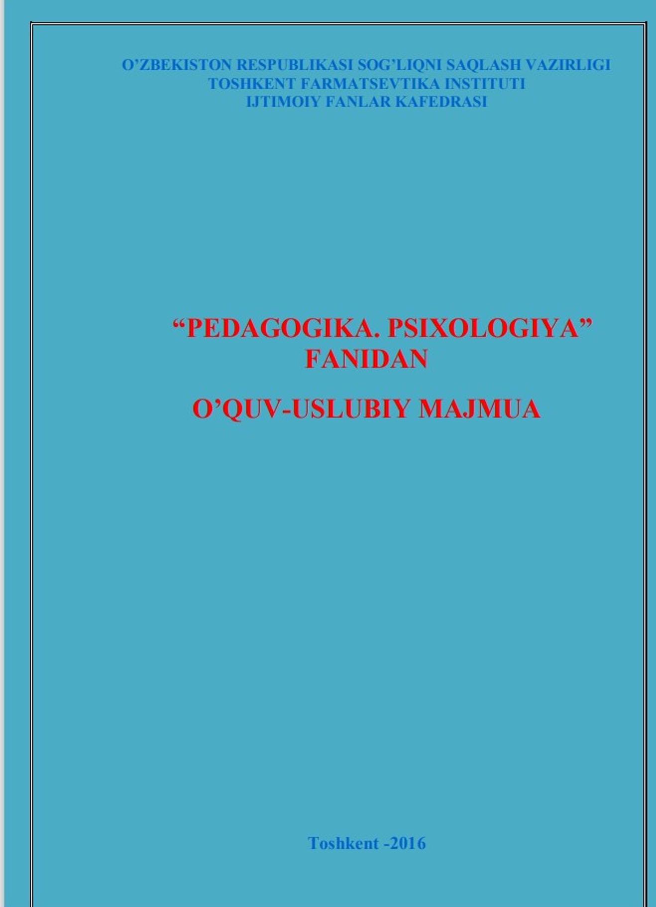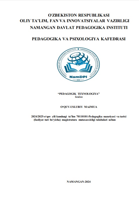 PEDAGOGIKA VA PSIXOLOGIYA FANLARIDAN O‟QUV-USLUBIY MAJMUA