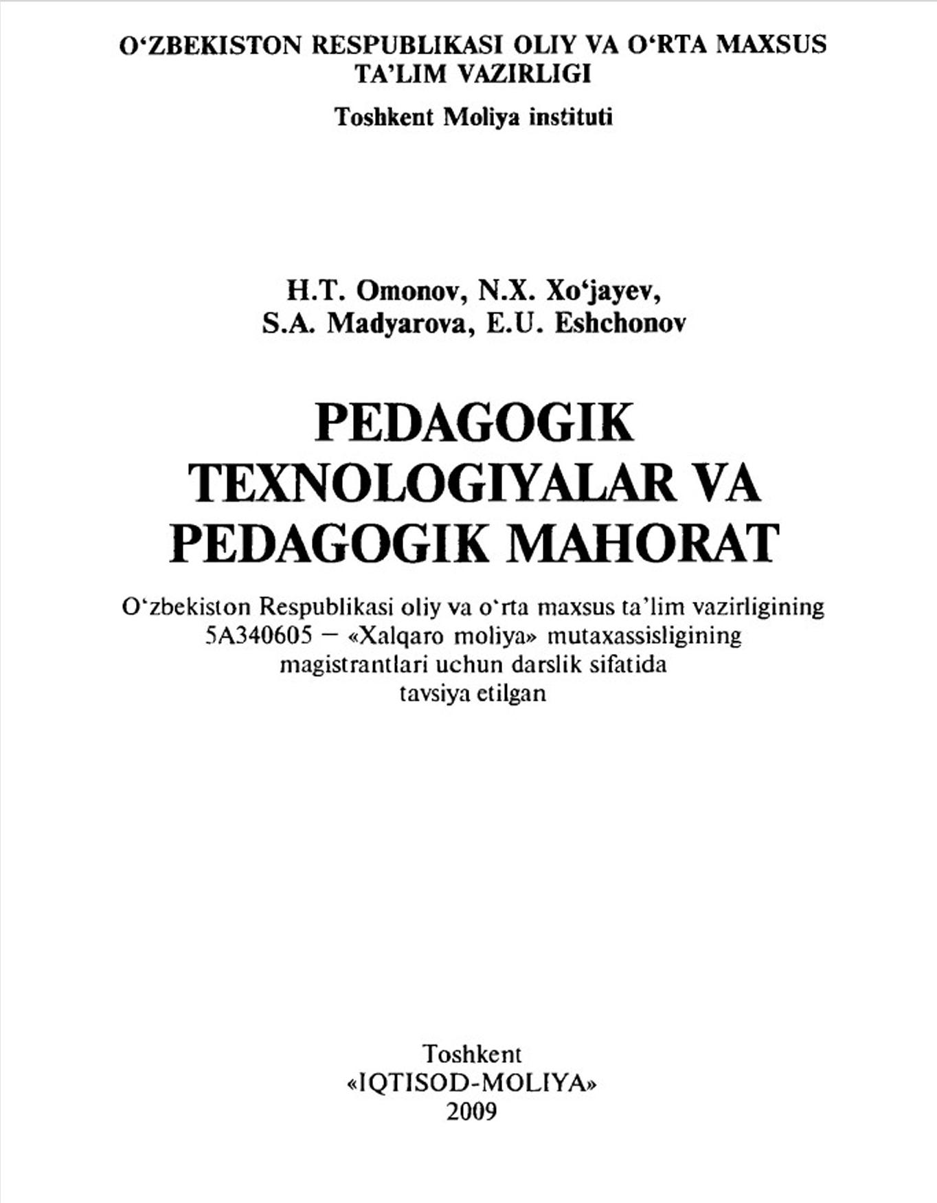 Pedagogik texnologiyalar vaPedagogik mahorat