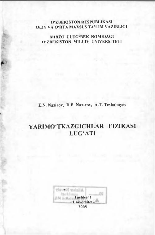 YARIMO’TKAZGICHLAR FIZIKASIDAN MASALALAR VA SAVOLLAR TO’PLAMI